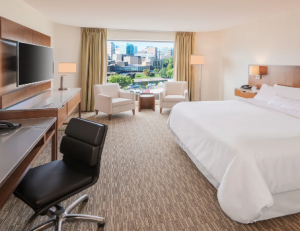 Enter a personal oasis of relaxation, designed to elevate your mood and enhance productivity. The Westin Ottawa Traditional Rooms feature expansive floor-to-ceiling windows that look out over the historic Byward Market while letting natural light illuminate the room. Sleek furnishings—including two plush armchairs—and a neutral color palette help create a fresh, inviting space. Business travellers will find all they need to keep up with work at an executive desk equipped with high-speed Internet Access (wireless included free for up to 3 devices for MII conference registrants) and a dual-line cordless speakerphone.